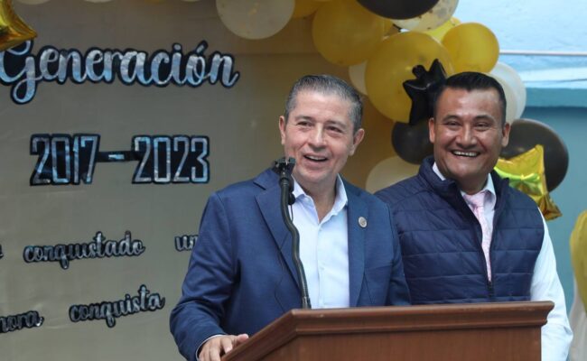 Como padrino de la generación 2017-2023, el alcalde felicitó a las 62 niñas y niños de 6º Año, quienes concluyeron su educación primaria; “no nada más es un ciclo escolar, están cumpliendo un ciclo de vida”.